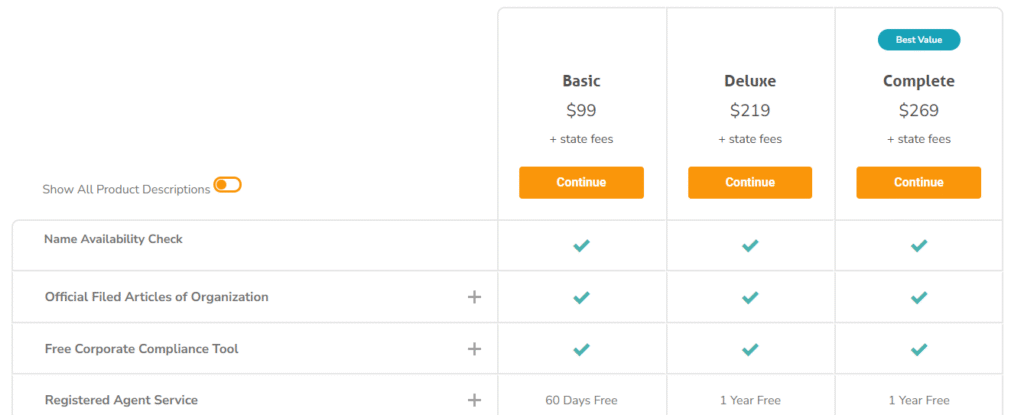 My Analysis: You’re paying $120 extra to get what most competitors include in their basic packages (1-year Registered Agent service). The EIN filing is free from the IRS, and many services offer fast processing without charging extra.