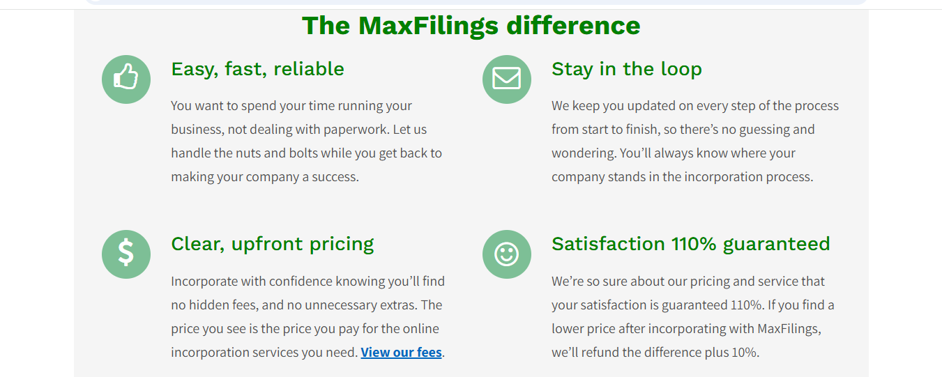 MaxFilings positions itself around three core principles: convenience, competitive pricing, and transparency. Unlike some formation services that try to be everything to everyone, MaxFilings focuses primarily on business formation with some complementary services.