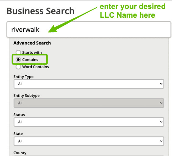 Clearly different businesses: If you want “Riverwalk Studios LLC” and only see “Riverwalk Ranch” and unrelated businesses, you’re probably good.