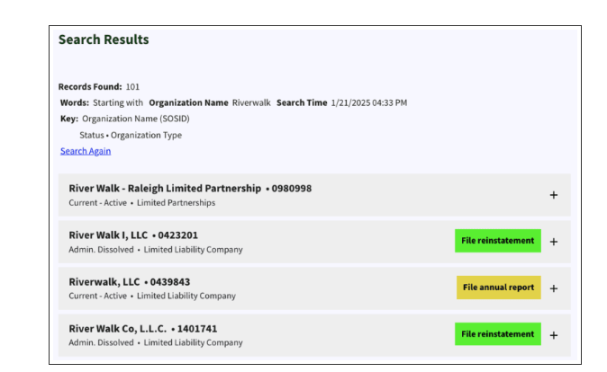 • 🟡 Similar names exist – Analyze for distinguishability using North Carolina’s standards