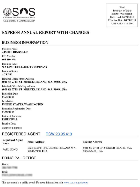 - Updated public record showing current filing